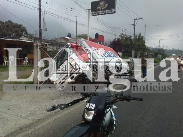 Chocamán.- Una camioneta de la empresa Lala, terminó por salirse del camino y caer a una de las cunetas sobre la carretera federal Fortín – Huatusco, el accidente supuestamente se genero después que el chofer de la empresa de lácteos, esquivara un carro que iba rebasando de manera imprudente.