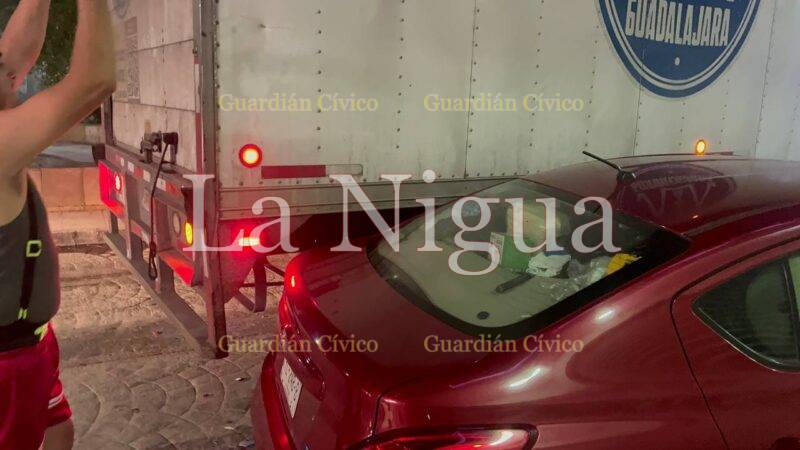 De acuerdo a las autoridades, el operador de un camión propiedad de la empresa Farmacia Guadalajara impactó a un vehículo estacionado.