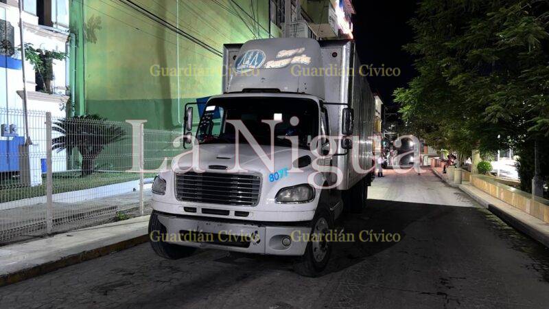 Un camión provocó daños a un vehículo estacionado la noche del pasado Viernes en el primer cuadro de la ciudad.