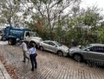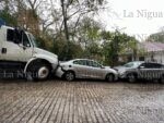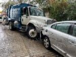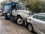 Un camión compactador provocó un aparatoso percance tras chocar contra dos vehículos estacionados la mañana de este miércoles.