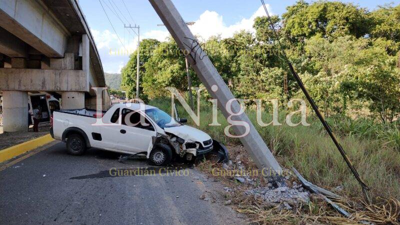 Tres sujetos que viajaban a bordo de una camioneta Chevrolet, tipo Tornado, resultaron con lesiones leves luego de que la unidad en que se transportaban chocó contra un poste de la CFE que se ubica a la orilla de uno de los ramales que forman parte del distribuidor vial del llamado crucero de las Tres Huastecas.