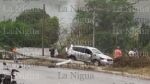 Huejutla, Hgo.- Por poco muere electrocutado un automovilista la tarde de este jueves, luego de chocar y tumbar un poste de luz en las afueras de la ciudad.