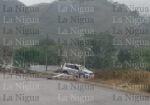 Testigos refieren que la unidad viajaba a alta velocidad y al agarrar la curva derrapó, se pasó al carril contrario impactandose contra el poste y culminando su loca carrera en el monte.