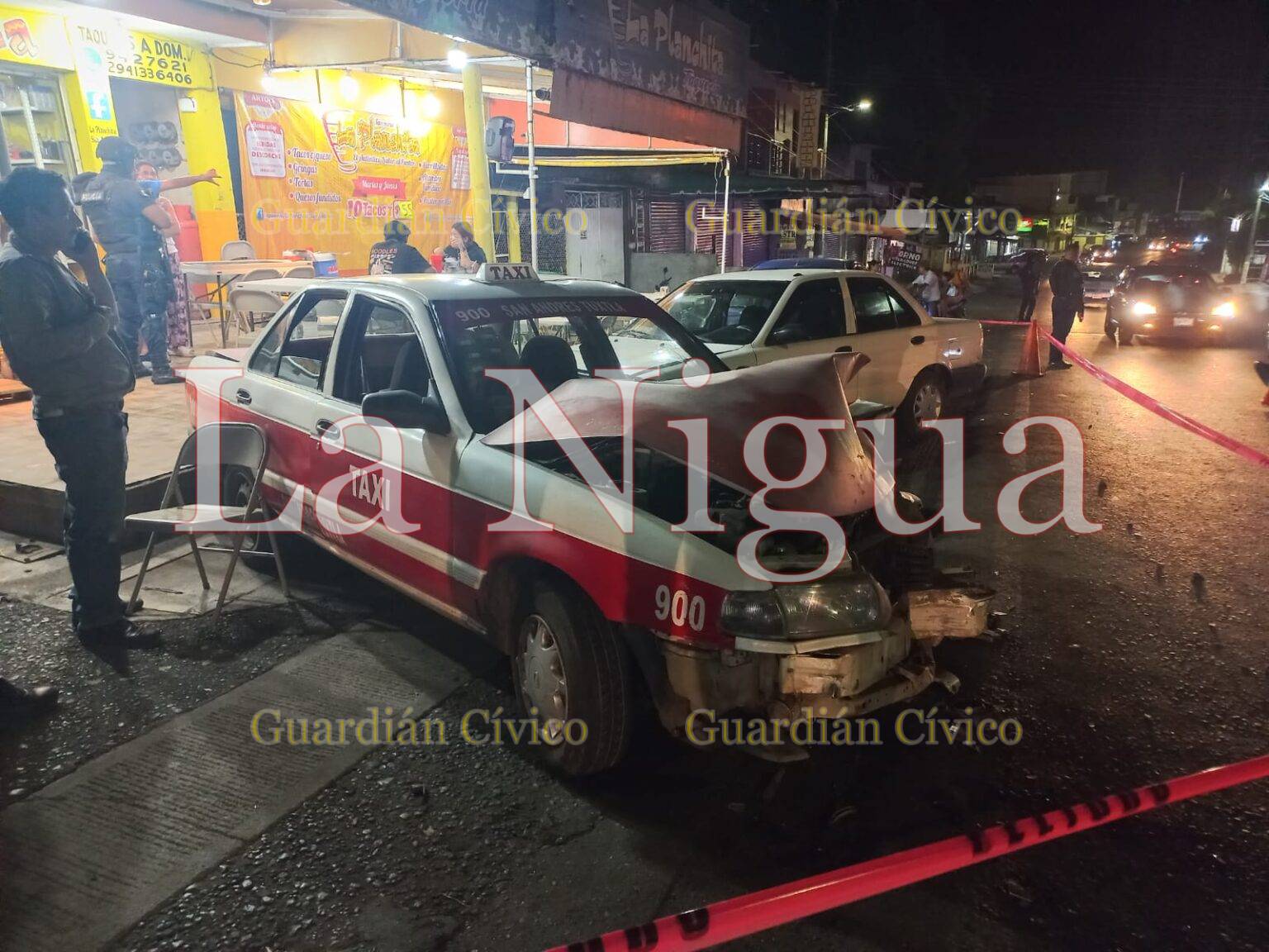 Una unidad del transporte público en su modalidad de taxi, marcado con el número económico 900 de este municipio la cual era conducida por el ciudadano Tomas N. de 41 años de edad, sería quien recibiría mayor daño, afectando por el impacto a dos unidades particulares que se encontraban estacionadas cerca del lugar, un automóvil blanco tipo Tsuru y un automóvil color azul tipo March.