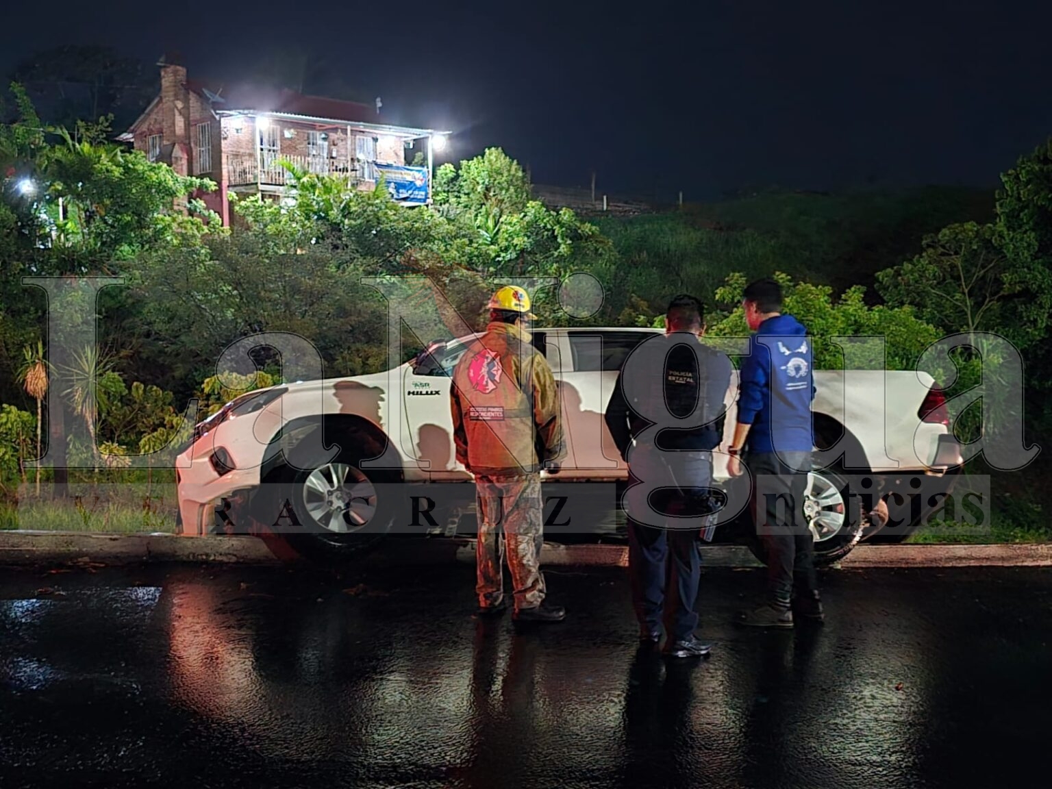 De acuerdo con los primeros informes, el exceso de velocidad combinado con el pavimento mojado debido a las lluvias provocó que una camioneta saliera del camino y quedara al borde de un pequeño riachuelo de aguas negras que cruza el tramo que comunica con la calzada Tlacotengo.