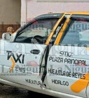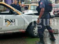 El taxi resultó con daños materiales en la facia, radiador, salpicadera delantera y el eje del lado derecho, mientras que la camioneta Nissan Estaquitas tuvo daños mínimos.