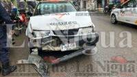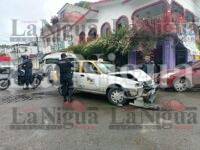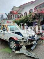 Huejutla, Hgo.- Fuertes daños materiales fue el saldo que dejó el accidente registrado en la colonia Juarez, entre un taxi y una camioneta particular.