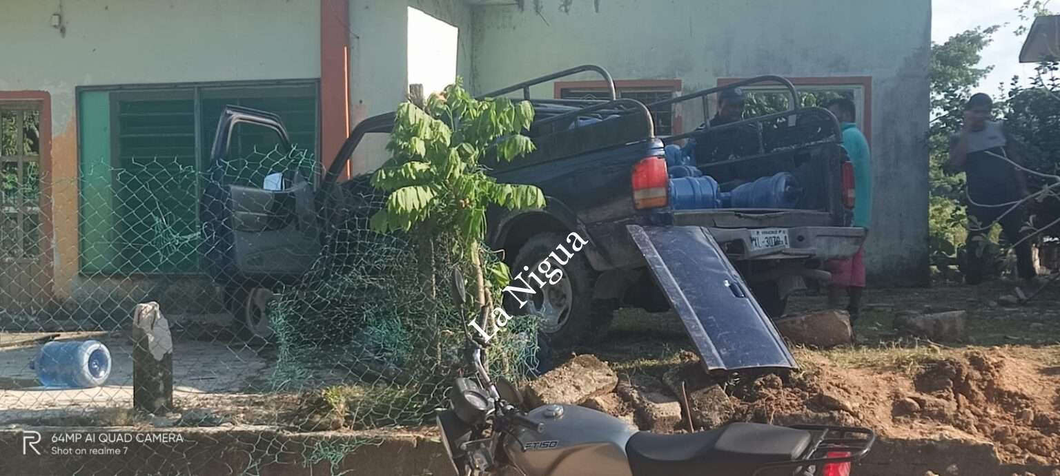 Una camioneta Ford Ranger, color azul, matrícula XL-3079-A, terminó dentro del patio de una vivienda luego que se quedara sin frenos al transitar por una pendiente en la colonia Agraria del municipio de Las Choapas.