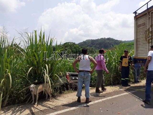 Los hechos se registraron esta tarde cuando el conductor de la camioneta Ford al desplazarse a la altura de Cárdenas, al llegar a la curva conocida como Puente Lagarto, perdió el control de la unidad lo que provocó que terminara dentro de unos cañaverales.
