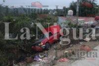 Tantoyuca, Ver.- Una camioenta se fue al fondo de un barranco, pese a las diversas estrategias que quisieron aplicar los dueños de la unidad, ellos no pudieron evitar que las autoridades llegarán hasta el lugar y se hicieran cargo de la situación de riesgo que presentaba este accidente en la colonia El Wash.