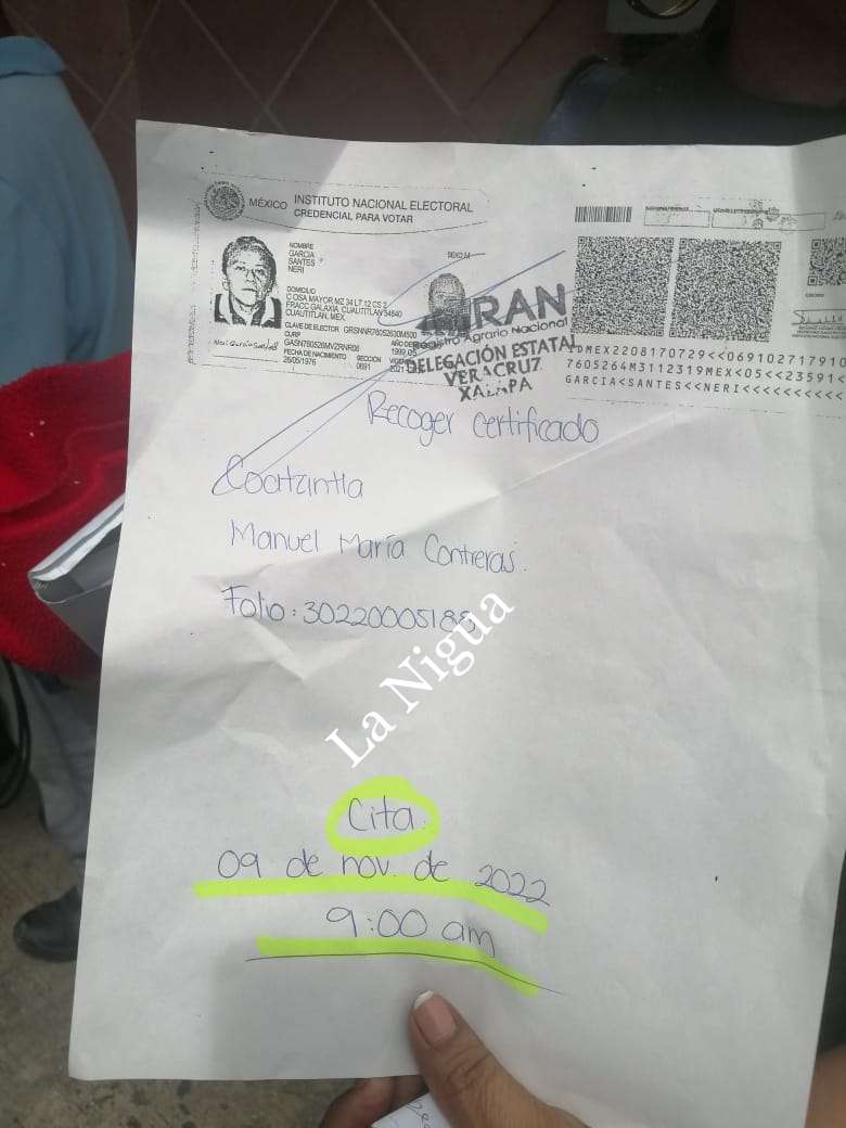 Los campesinos piden que los atienda el encargado de despacho del RAN. Javier Saldo al García, ya que sus empleados tratan muy mal a los campesinos, otro caso si los campesinos son acompañados por su gestor, simplemente no los atienden, como a la campesina, Neri García Santes, que viene a recoger su certificado parcelario de la localidad “Manuel María Contreras” del municipio de Coatzintla, ya que su gestora es la Lic. Mireya Domínguez González, le respondió un trabajador del área jurídica que no le podían entregar su documento y q regresará en el mes de noviembre, ” pero sola” sin su gestor.