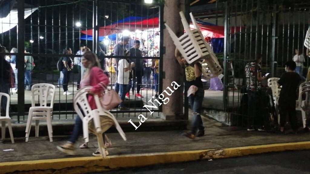 Otra parte del público no participó en el robo y cuestionó el proceder de algunos asistentes que querían cobrar lo que pagaron por su boleto, llevándose el mobiliario.