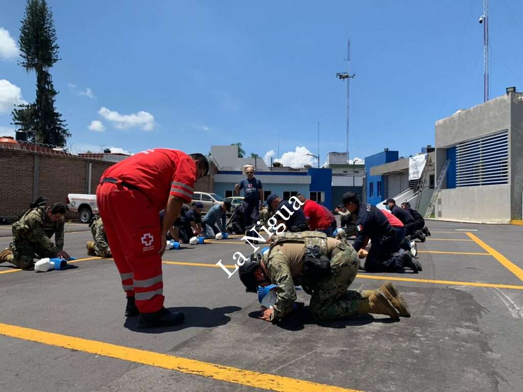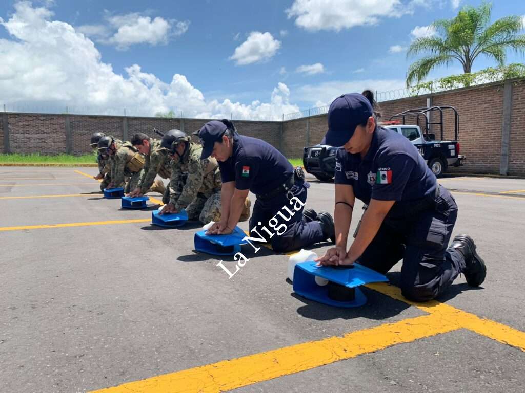 En total están siendo instruidos 140 agentes de ambas corporaciones, esto en una jornada de 8 horas para ser acreditados en el curso denominado “6 pasos para salvar una vida”.