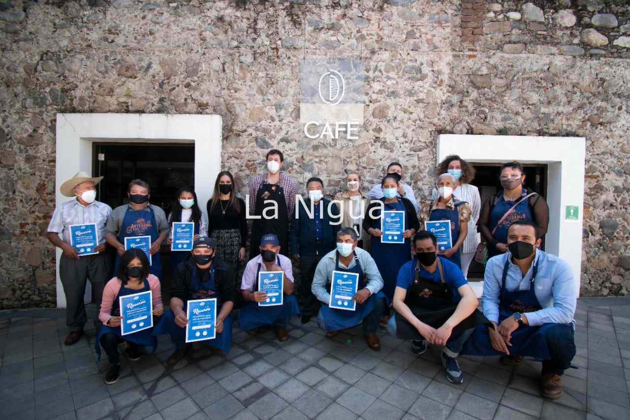 Al término del taller los productores Filemón Hernández, Josías Juárez, Ashley Juárez, Teresa Galán, Ana Rosa Méndez, Cirilo Ambrosio, Constantino Pineda, Julia Mina, Amando Villegas, Ambrosio García y Aurora Suazo fueron reconocidos por las autoridades municipales y el catador experto de la empresa española.
