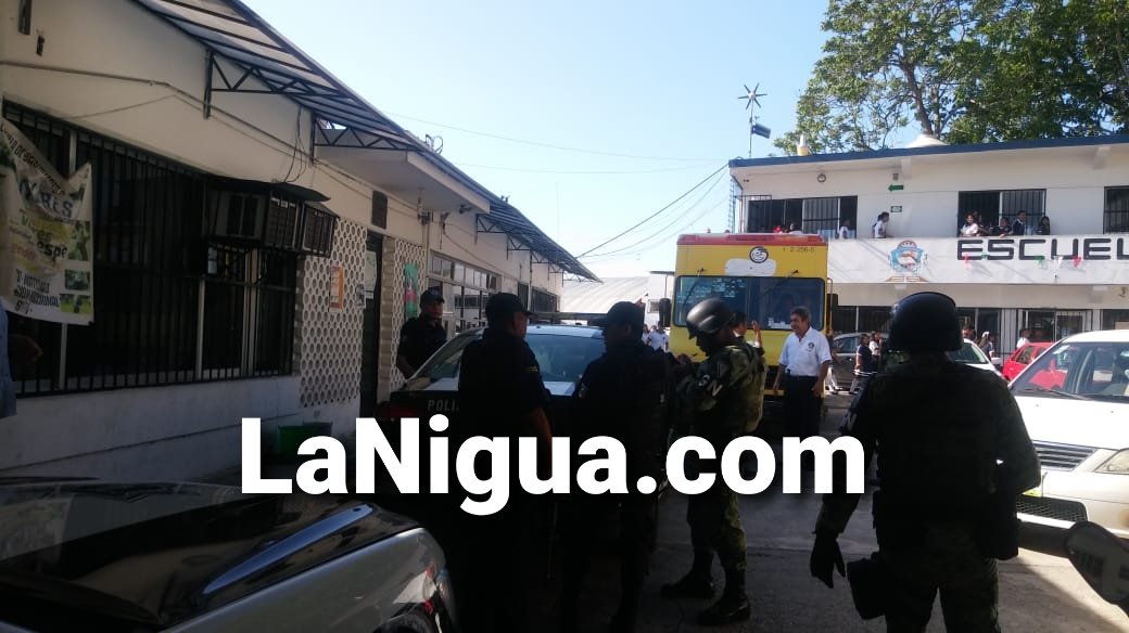 PAPANTLA, VER.- Como parte de los protocolos de seguridad, la dirección de la Escuela de Bachillerato Oficial Papanteca a cargo del profesor José Luis Atzin Pérez; realizó un fuerte simulacro por supuesta agresión por sujetos armados en las inmediaciones de dicho plantel educativo.