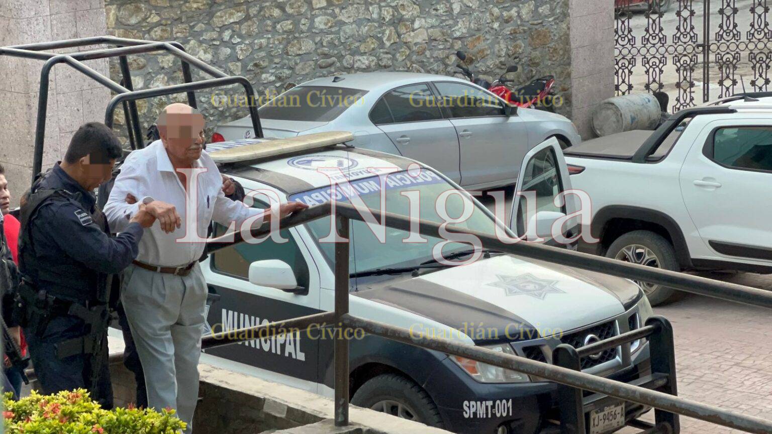 Se trata del conocido empresario Efren “M” de 89 años de edad con domicilio en la calle Igualdad de la zona centro, este fue detenido a petición de una mujer y esperaran un termino de 48 horas para saber si va a der procesado por algun delitos en su contra.