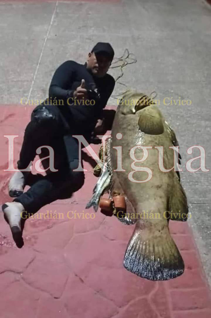 El ejemplar fue capturado por un buzo porteño apodado “El Atlante”, quien cuenta con años de experiencia practicando el buceo y la pesca.