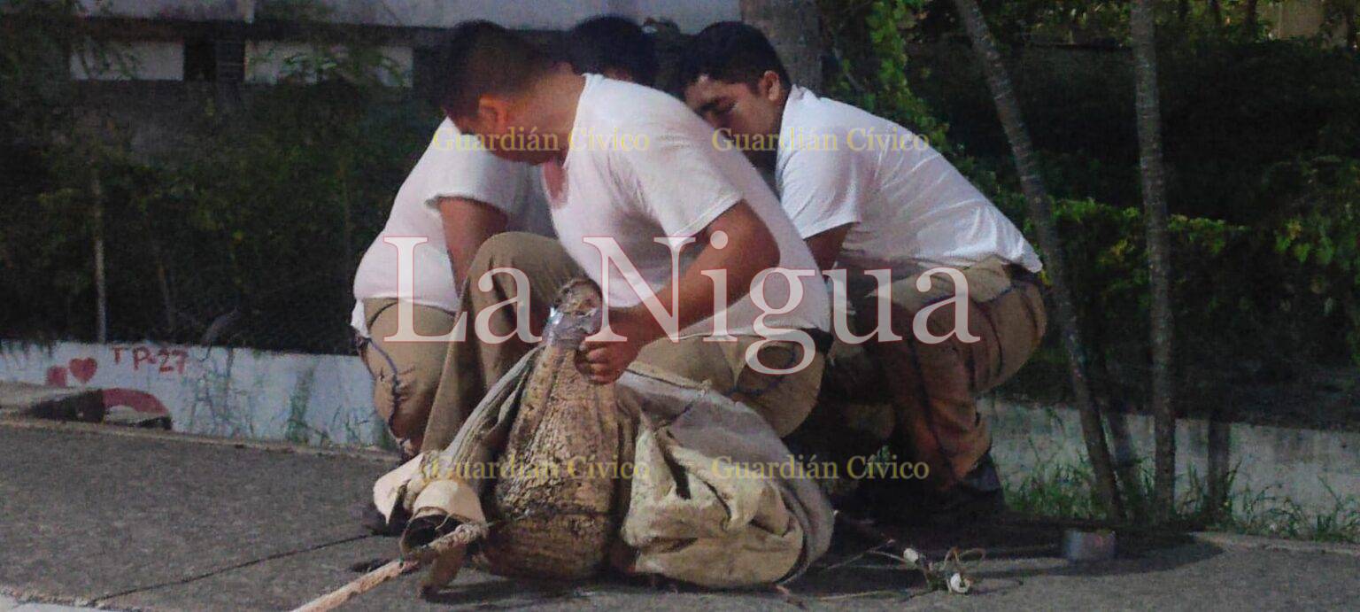 El saurio fue atrapado con el apoyo de soga, cinta y varios metros de tela lograron domarlo, reportando que se trataba de un animal joven, por loq ue seria reubicado en un lugar seguro fuera de la afectación a la población, seguramente dentro de la laguna.