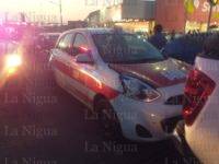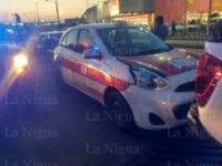 Una persona que viajaba como pasajera de un taxi resultó lesionada, además de daños materiales por casi 60 mil pesos, fue el saldo de una carambola que se registró la tarde del martes en la colonia Héroes de Nacozari de Coatzacoalcos.