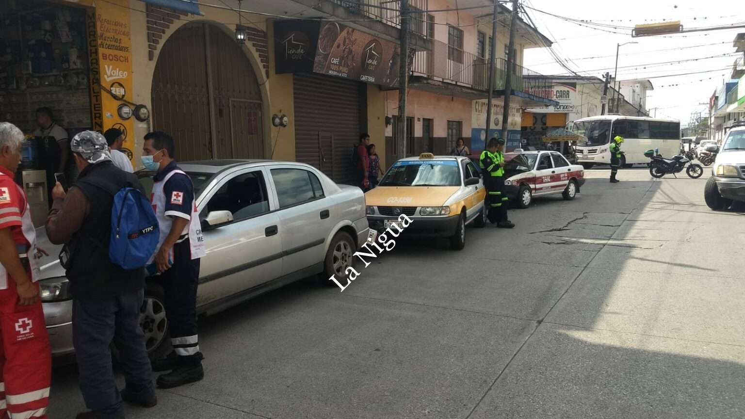Córdoba, Ver.- Un aparatoso choque donde se vieron involucradas una camioneta Ford-Lobo, dos taxis, una motoneta y un vehículo particular, provocó la mañana de este viernes la movilización de paramédicos de la Cruz Roja y posteriormente de las autoridades de Tránsito Municipal.