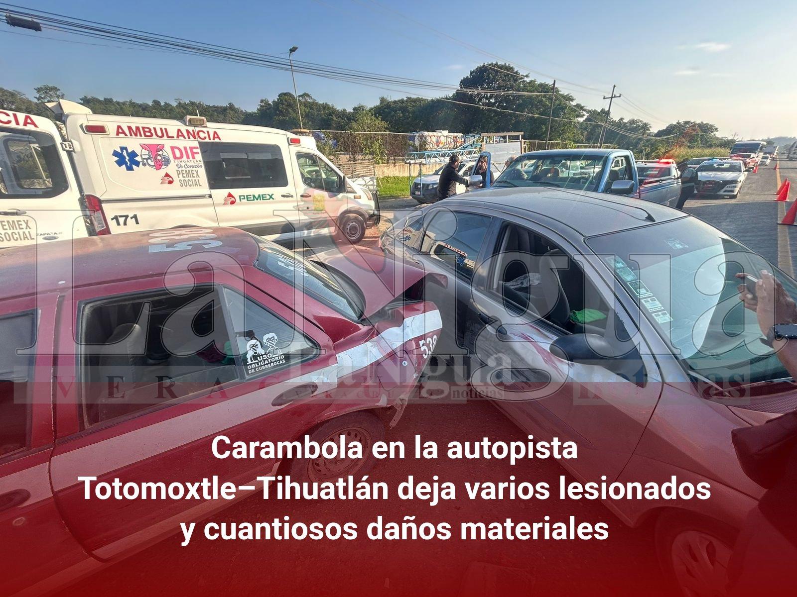 Tihuatlán, Veracruz.– La falta de precaución y el exceso de velocidad provocaron una fuerte carambola la tarde de este miércoles 10 de diciembre de 2025, dejando como saldo varias personas lesionadas y elevados daños materiales sobre la autopista Totomoxtle–Tihuatlán, en el tramo Poza Rica–Tihuatlán, entre los ranchos Las Granjas y San Marcos.