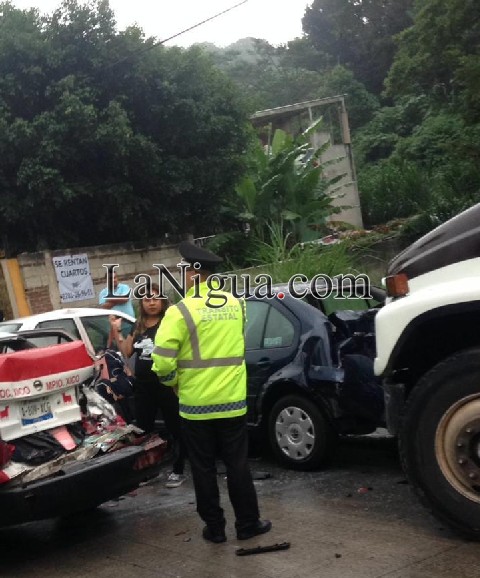 Este accidente fue unos minutos antes de las ocho de la mañana, fue una carambola, debido a la lluvia que cayó desde muy temprano, se reportan personas con lesiones leves, pero daños materiales cuantiosos.