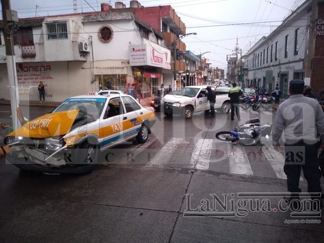 [vc_row][vc_column][vc_column_text]Córdoba, Ver.- Dos lesionados, daños materiales por 20 mil pesos y bloqueo de la vialidad fue el saldo de una carambola entre una camioneta, un Taxi y una motocicleta en la avenida 1 y calle 8 de la colonia centro.