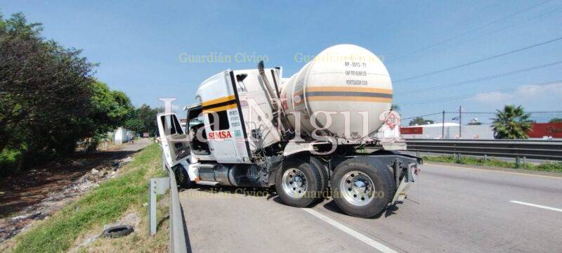 Córdoba, Ver.- Una movilización por parte de los diferentes grupos de auxilio así como también por el personal de Caminos y Puentes Federales y oficiales de la Guardia Nacional es el que se registró la mañana de este sábado, debido a que un tractocamión tipo pipa acoplado a un doble remolque, de la empresa transportes Simsa, término accidentado al momento de circular sobre el kilómetro 290 de la autopista México-Veracruz quedando a punto de salirse por completo del camino, debido a que el operador perdió el control aparentemente al tratar de evitar chocar por alcance contra otro camión de carga a la altura del puente de La Quebradora.