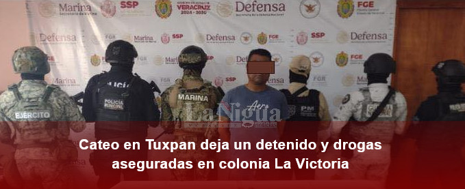 Tuxpan, Veracruz, 5 de diciembre de 2025.– Un hombre fue detenido y diversas sustancias ilícitas fueron aseguradas durante un operativo de cateo realizado en la colonia La Victoria, en el municipio de Tuxpan, como resultado de un despliegue coordinado entre fuerzas federales y estatales.