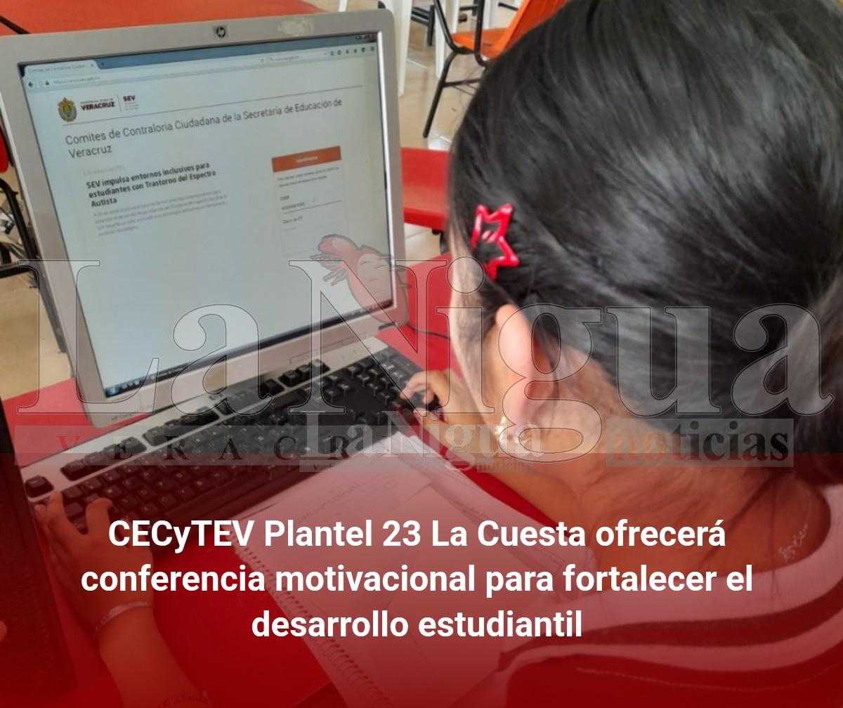 Camerino Z. Mendoza, Ver.— El Plantel 23 La Cuesta del Colegio de Estudios Científicos y Tecnológicos del Estado de Veracruz (CECyTEV) anunció la realización de una conferencia motivacional dirigida a su comunidad estudiantil, con el objetivo de impulsar su crecimiento personal y profesional.