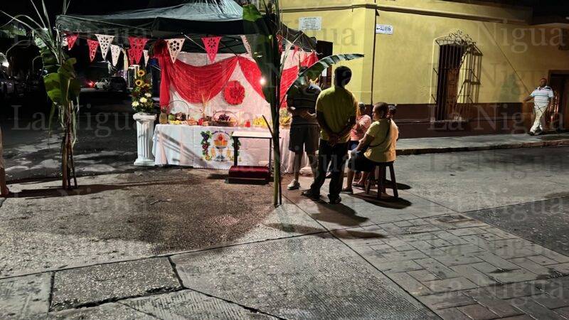 Familias pusieron altares con flores, frutas y adornos de papel, para recibir a los feligreses en cada parada donde oraban en todo el recorrido. Otras personas colocaban veladoras si re la acera, para iluminar la peregrinación