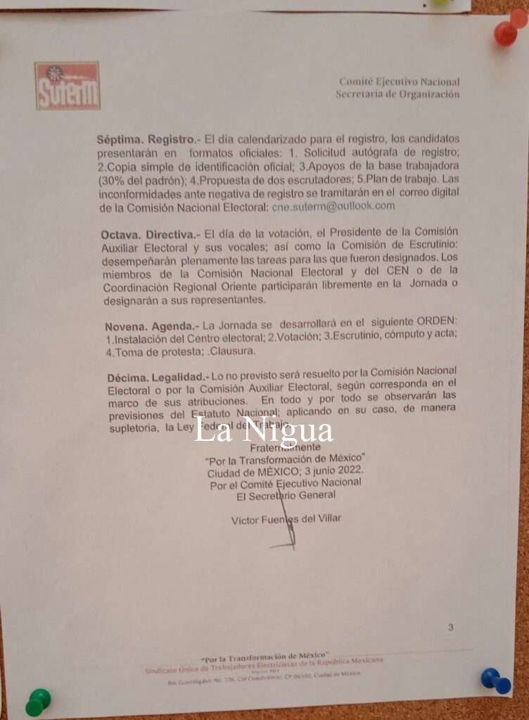 De acuerdo a la convocatoria la jornada electoral tendrá lugar el próximo viernes 15 de julio del 2022 a partir de las 16 horas en el deportivo sindical.