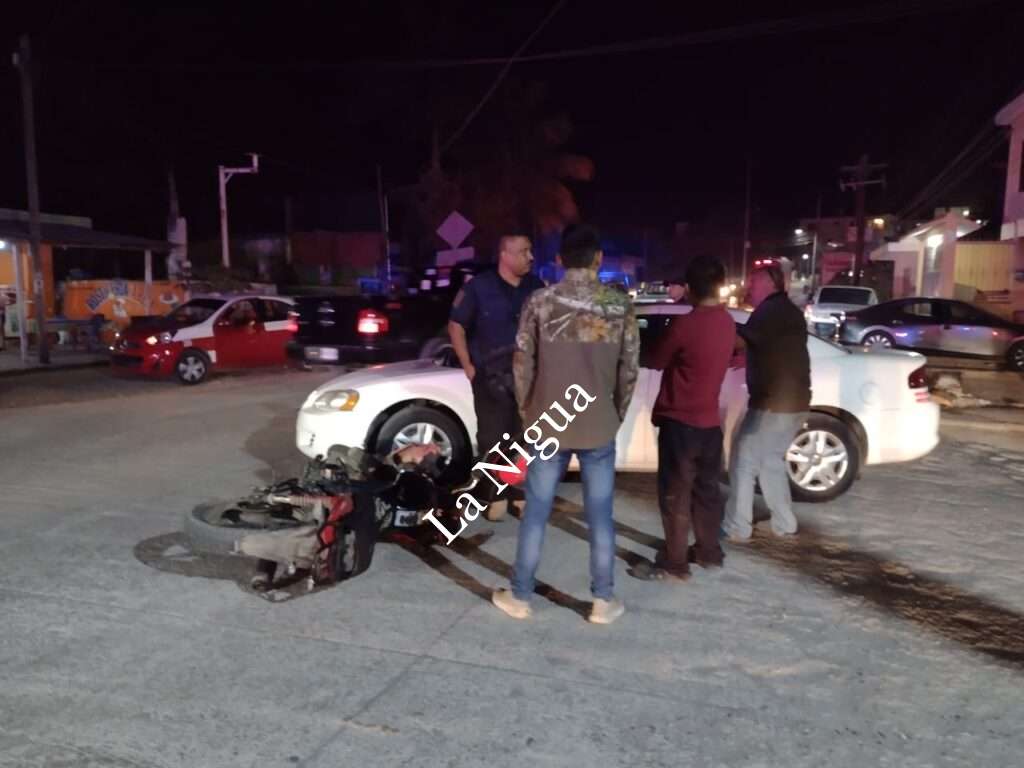 En ese punto quedó tendido en el suelo una moto Italika 125Z y a un costado su conductor Kari Gabriel, quien resultó con raspones leves que no ameritó traslado al hospital.