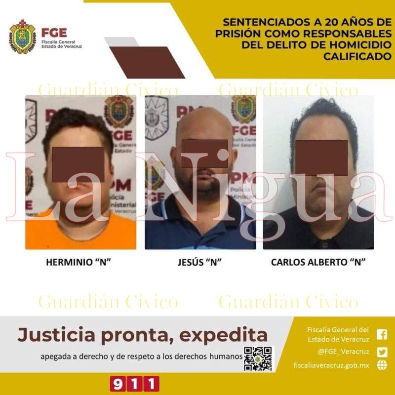 Coatzacoalcos, Ver., 31 de octubre de 2023.- La Fiscalía Regional #Coatzacoalcos logró sentencia condenatoria de 20 años de prisión en contra de Herminio “N”, Jesús “N” y Carlos Alberto “N” como responsables del delito de homicidio calificado en agravio de la víctima identificada con las iniciales M.A.G.L.