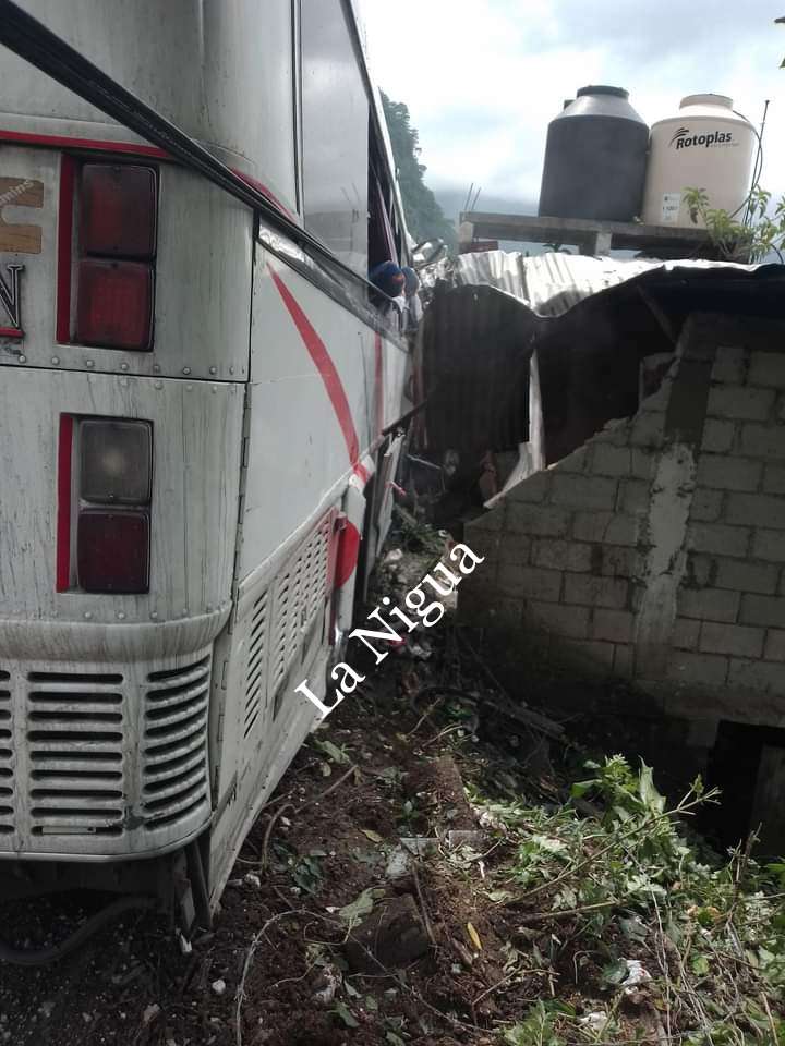 El chófer del autobús conducía a un velocidad no muy moderada, usando los frenos ante las curvas cerradas, al bajar la “Curva del Piojo “, empezó a tener problemas con los frenos, los cuales le dejaron de funcionar, por lo que metros adelante se impacto con un domicilio particular, frenando así su loca carrera.