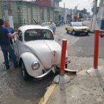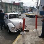 Córdoba, Ver.- Un vehículo Volkswagen tipo sedan terminó incrustado contra unos postes metálicos, luego de que dicha unidad fue impactada por un vehículo Volkswagen tipo Beetle, ya que el conductor de la segunda unidad al no hacer alto total ni respetar los señalamientos de vialidad, provocó el accidente en el cruce de la avenida 5 con calle 21 en el centro de la ciudad para posteriormente darse a la fuga.