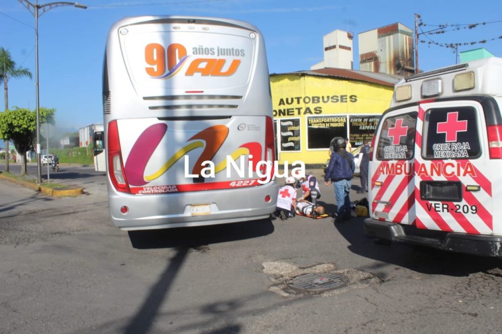 Córdoba, Ver.- Policontundido resultó un joven luego de estrellarse contra un autobús, cuando viajaba a bordo de su motocicleta a la altura de la central camionera, lo que provocó la movilización de los cuerpos de seguridad y de rescate.