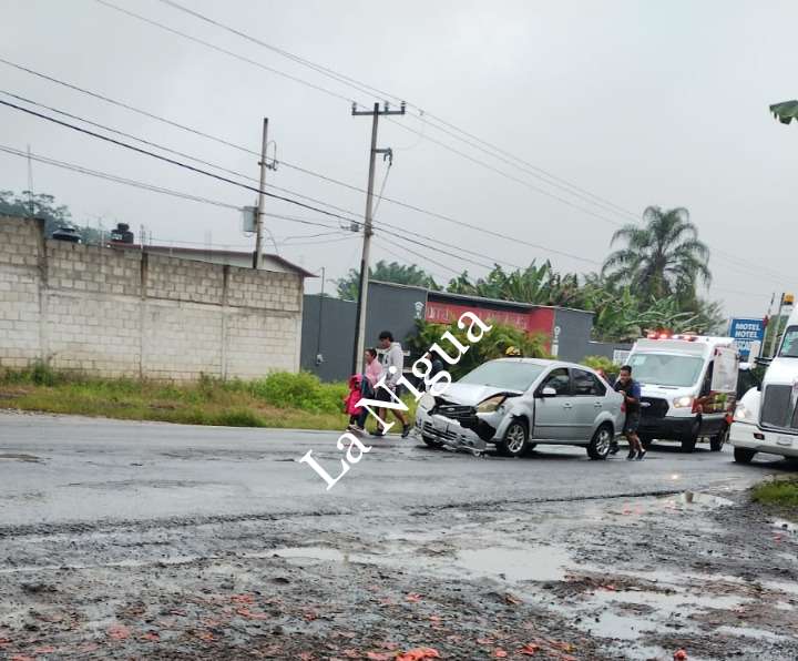 Fortín, Ver.- Solo daños materiales así como la presencia de los grupos de auxilio y de autoridades de Tránsito Estatal, es lo que dejó el choque por alcance entre un vehículos particulare y un camión repartidor de cerveza, al impactarse por alcance cuando circulaban sobre la carretera federal Fortín-Huatusco, a la altura de la localidad de Monte Salas.