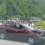Los hechos se registraron luego de que la conductora de un automóvil Chevrolet Aveo, color vino y con placas YKR5721, terminó impactándose contra la barra de contención, a la altura del destacamento de la Policía Federal.