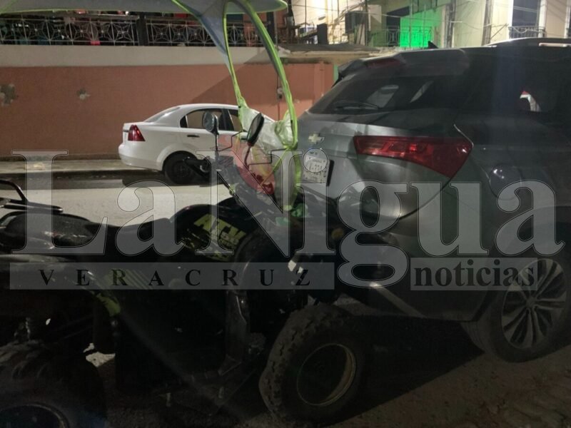 A decir de curiosos, la cuatrimoto de la marca Italika, ATV 150, de color verde con negro, se encontraba estacionada en una pendiente, pero posiblemente los frenos se le “vencieron” y avanzó sin control.