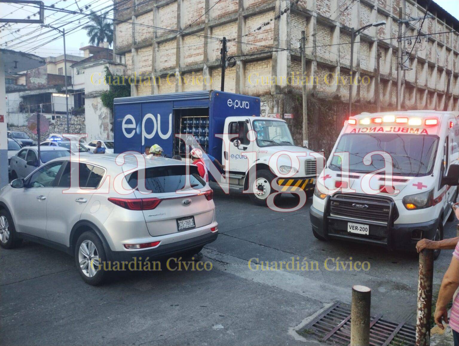 Córdoba, Ver.- La conductora de una camioneta KIA-Sportage, resultó con algunos golpes teniendo que ser atendida por paramédicos de la Cruz Roja, luego de que fuera impactada por un camión repartidor de agua, con número económico 31912, razón social a nombre de bienes raíces metropolitanos S. DE. R.L DE C.V., debido a que el conductor de la segunda unidad no respetó la preferencia vehicular al momento de circular sobre la calle 7 ya que al llegar a la avenida 9 provocó el accidente dejando a la camioneta atravesada y en sentido contrario.