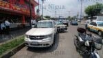 Tras el choque el taxi terminó proyectándose contra una camioneta Dodge que estaba estacionada.