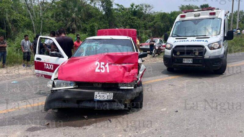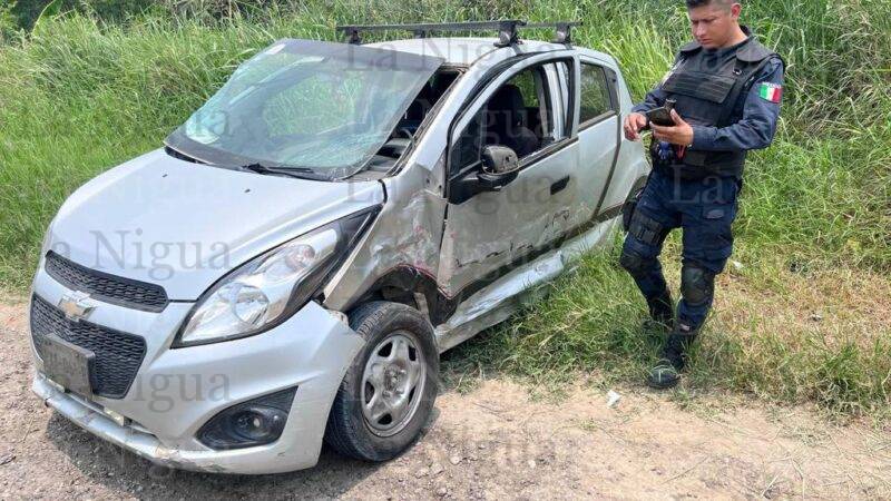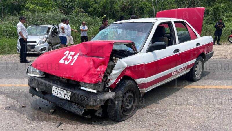 De acuerdo a testigos, el conductor de un vehículo Chevrolet, Spark, de color gris, al tratar de incorporarse a la carretera federal hizo corte de circulación y provocó que un taxista terminara impactándolo.