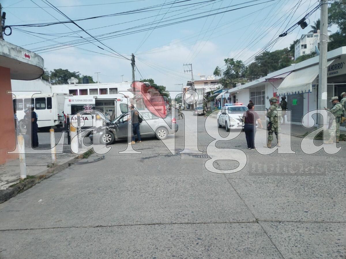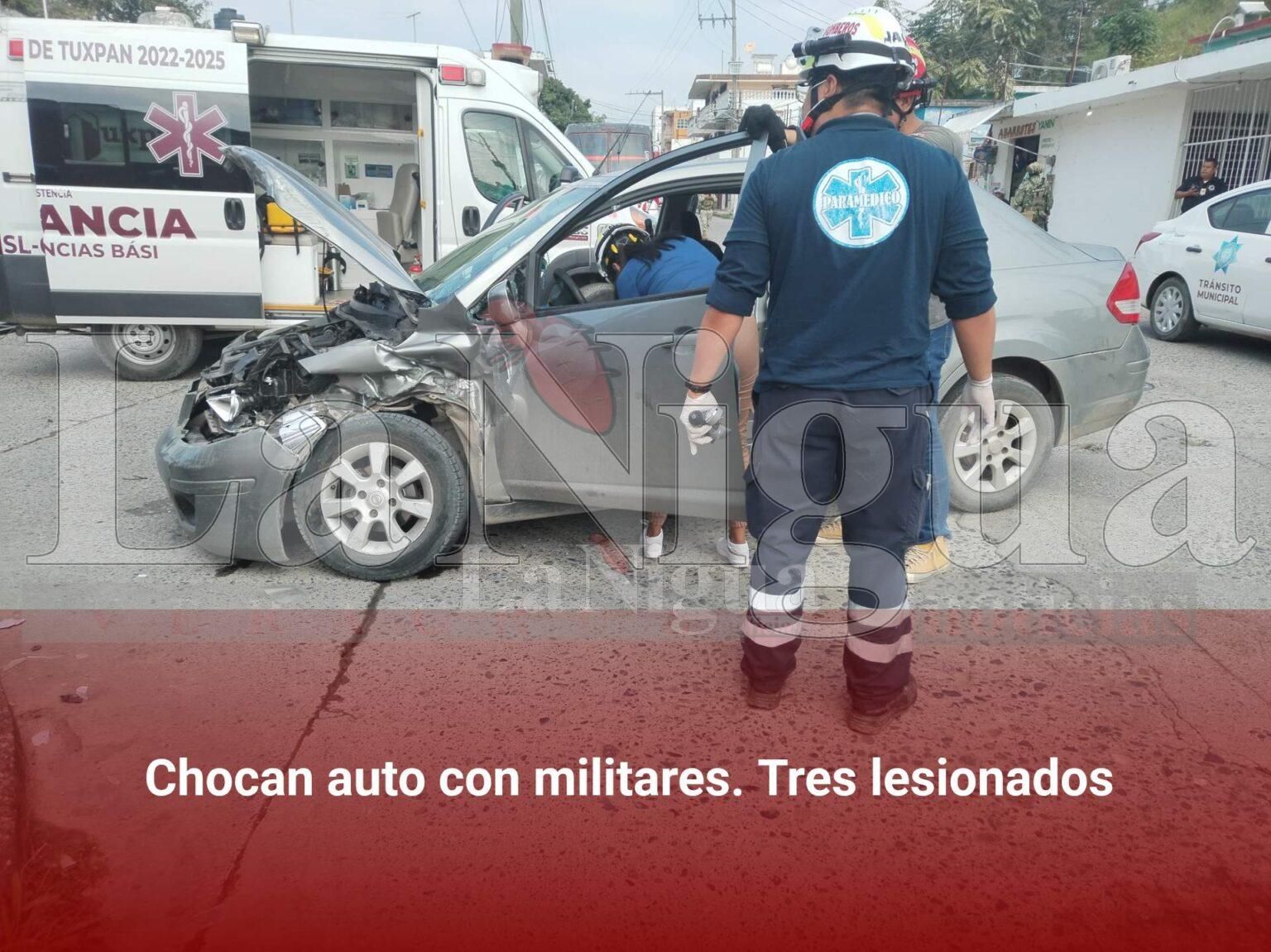Tuxpan, Ver., 4 de diciembre de 2025. Un fuerte accidente entre un vehículo táctico del Ejército Mexicano y un automóvil particular dejó como saldo tres personas lesionadas y cuantiosos daños materiales en la zona centro del puerto.