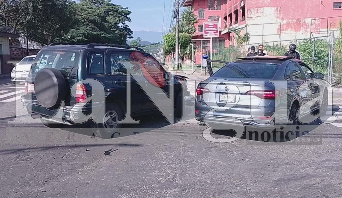 Fortín, Ver.- Daños materiales de consideración así como la movilización de paramédicos, elementos de la policía y autoridades de Tránsito Estatal, fue lo que dejó la mañana de este viernes un aparatoso choque entre un vehículo Volkswagen-Jetta y una camioneta al momento de colisionar sobre la avenida 1 y calle 7 en la Colonia Centro de Fortín.