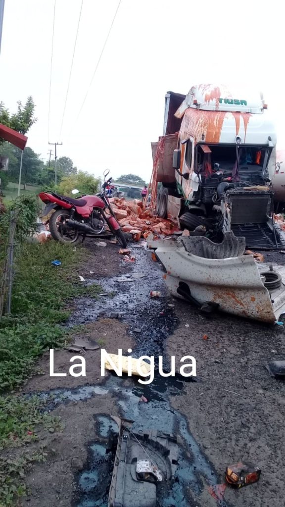 El accidente ocurrió en las primeras horas en el kilómetro antes mencionado, cuando el chofer del tráiler cargado con cemento y el del cargado con cajas de tomate, colisionaron al llegar a la entrada de la comunidad de Joachín.
