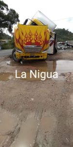 El impacto ocasionó que la caja del tráiler se rompiera, quedando regado algunos costales con productos químicos, mismos que fueron rapiñados por pobladores.