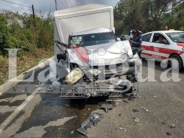 Quedando el conductor de la camioneta Nissan de caja seca y que trasladaba hielo a la comunidad de El Tajín, prensado entre el volante y el asiento; acudiendo elementos y unidades de Protección Civil, Escuadrón Nacional de Rescate, Policía Municipal y SSP, quienes ayudaron a sacar al conductor lesionado para trasladarlo a bordo de una ambulancia de Protección Civil al mando de Raúl Colorado e ingresarlo a las instalaciones del área de urgencias del hospital civil para su atención médica.
