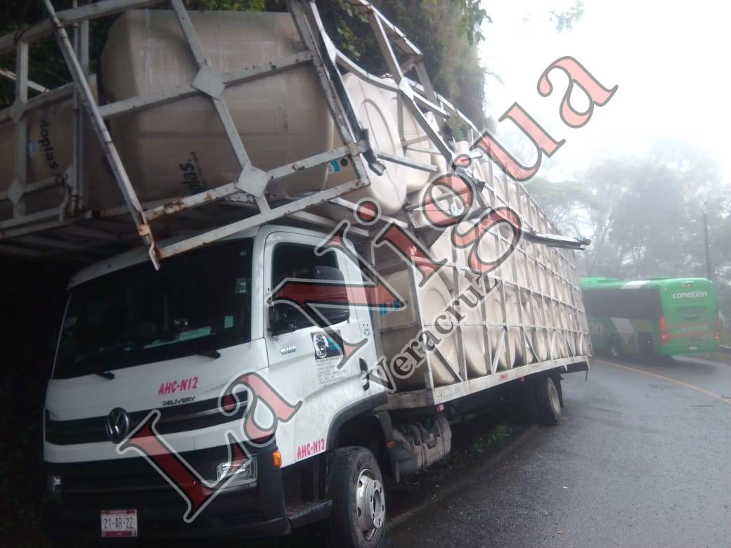 El camión fue impactado por un vehículo que transportaba tinacos.