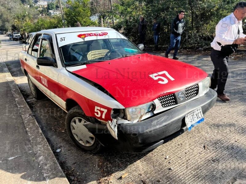 Tantoyuca, Ver.- Un choque entre dos vehículos de alquiler dejó como saldo sólo daños materiales mínimos en hechos registrados en calles de la Colonia Del Valle.